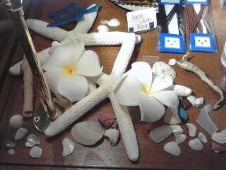 トヨダが海から拾ってきた小さな貝とビーチグラスと、サトウが購入してくれたヒトデで